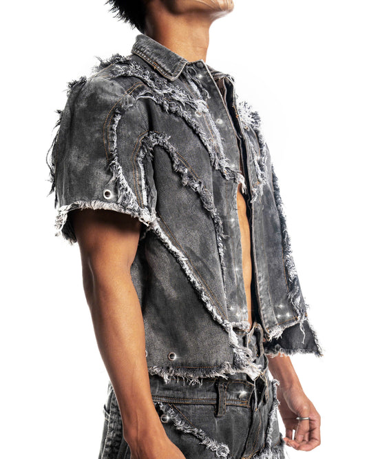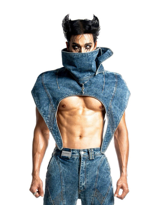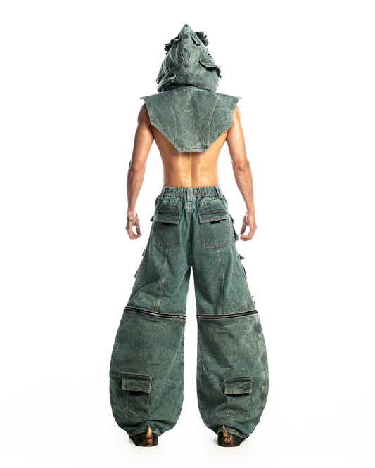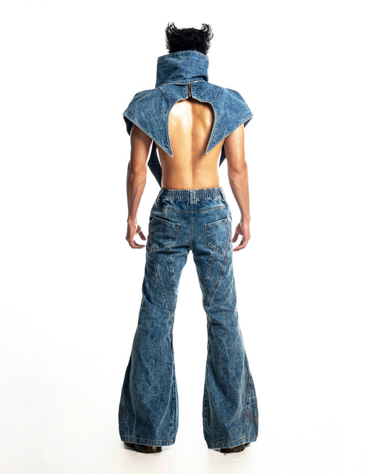 DARK SAGE DENIM FLARE OVERLAY TOP