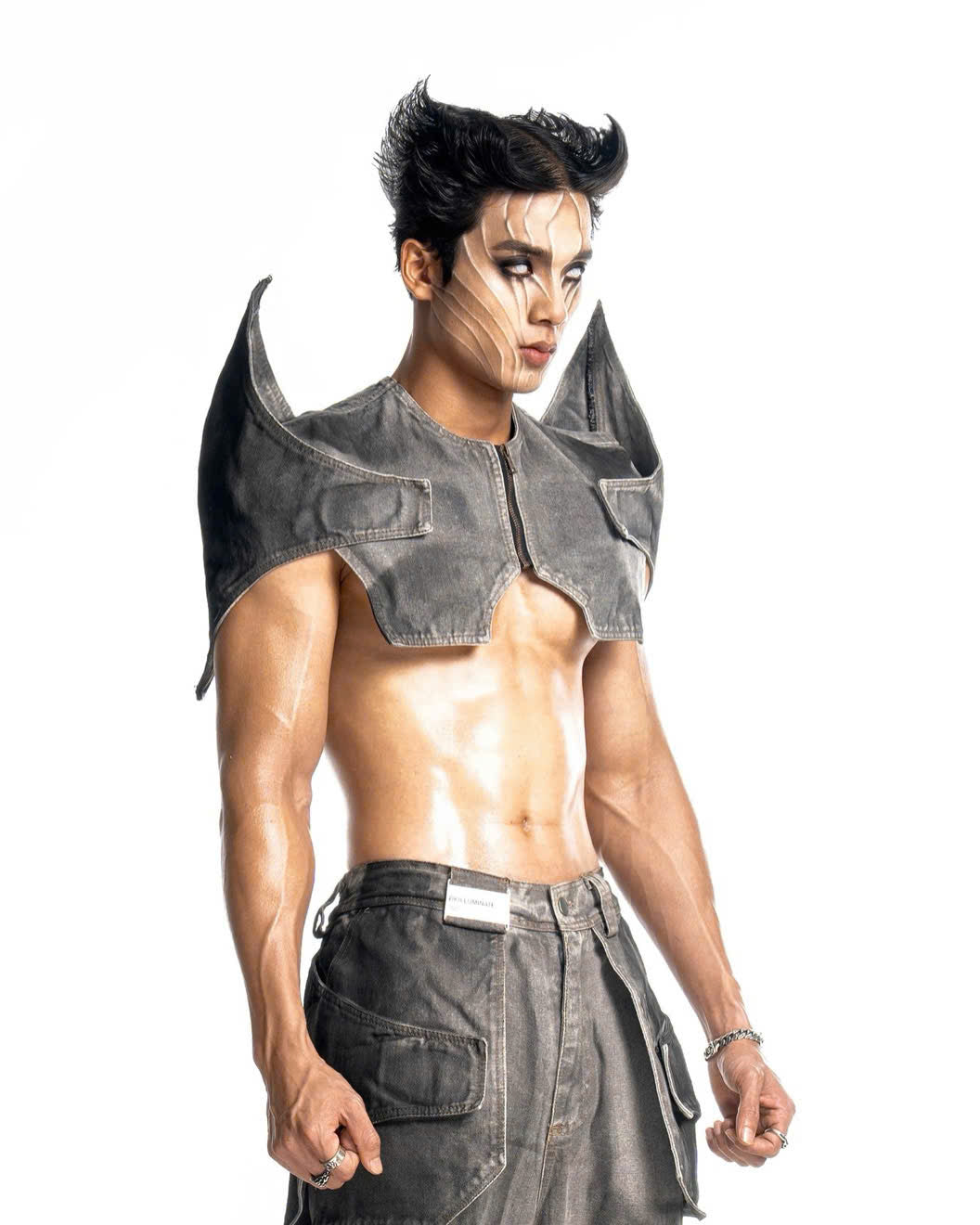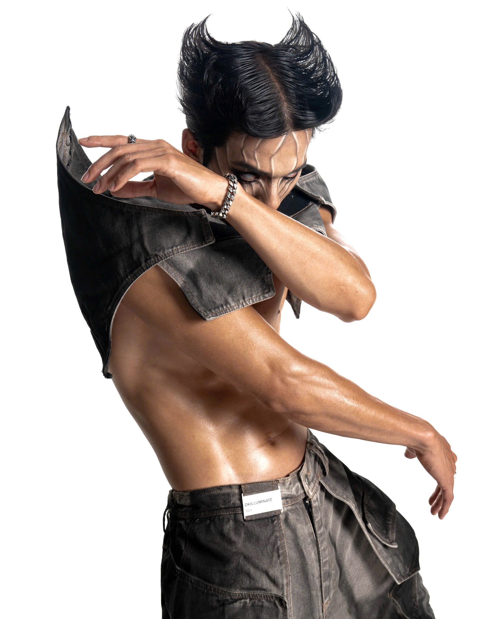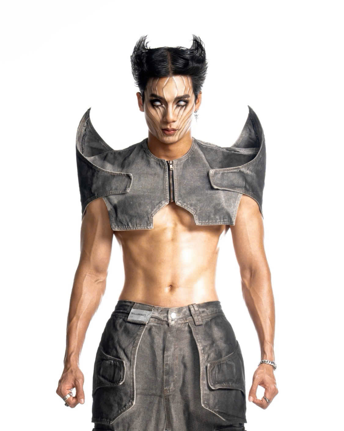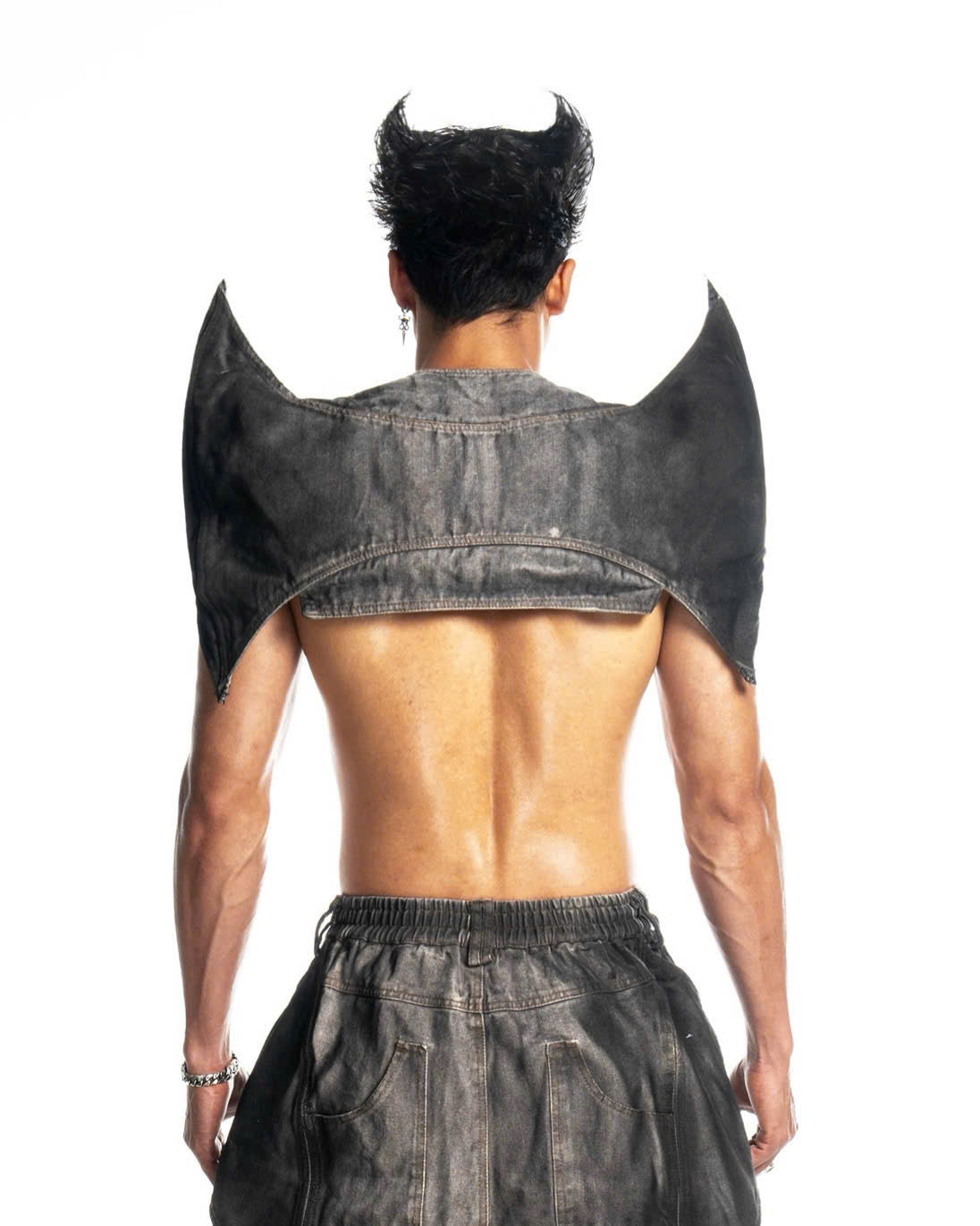 DARK SAGE DENIM FLARE OVERLAY TOP