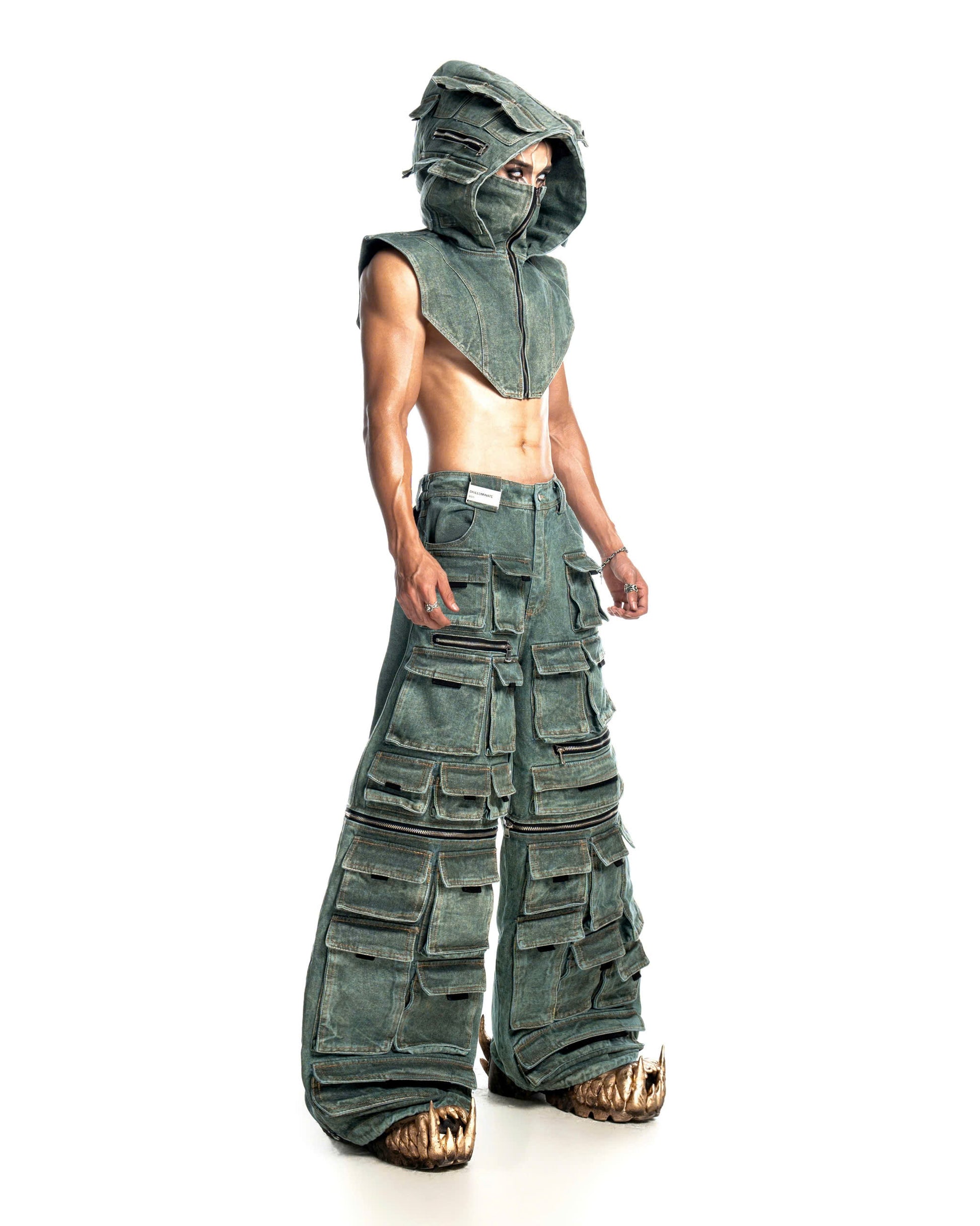 A signature 3-piece set including jacket, pants, and cap defined by a complex pocket system that reflects DKILLUMINATE’s utilitarian spirit.