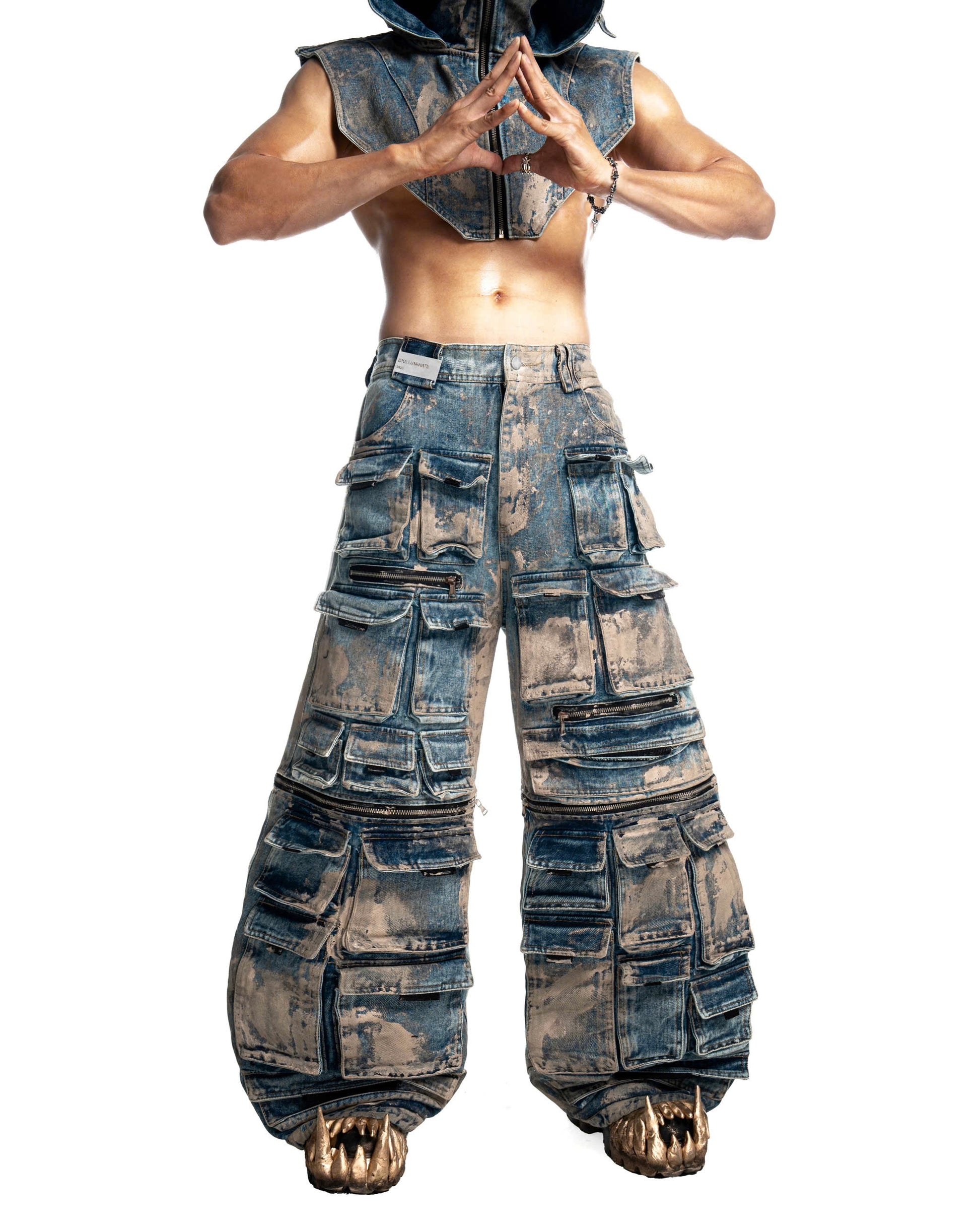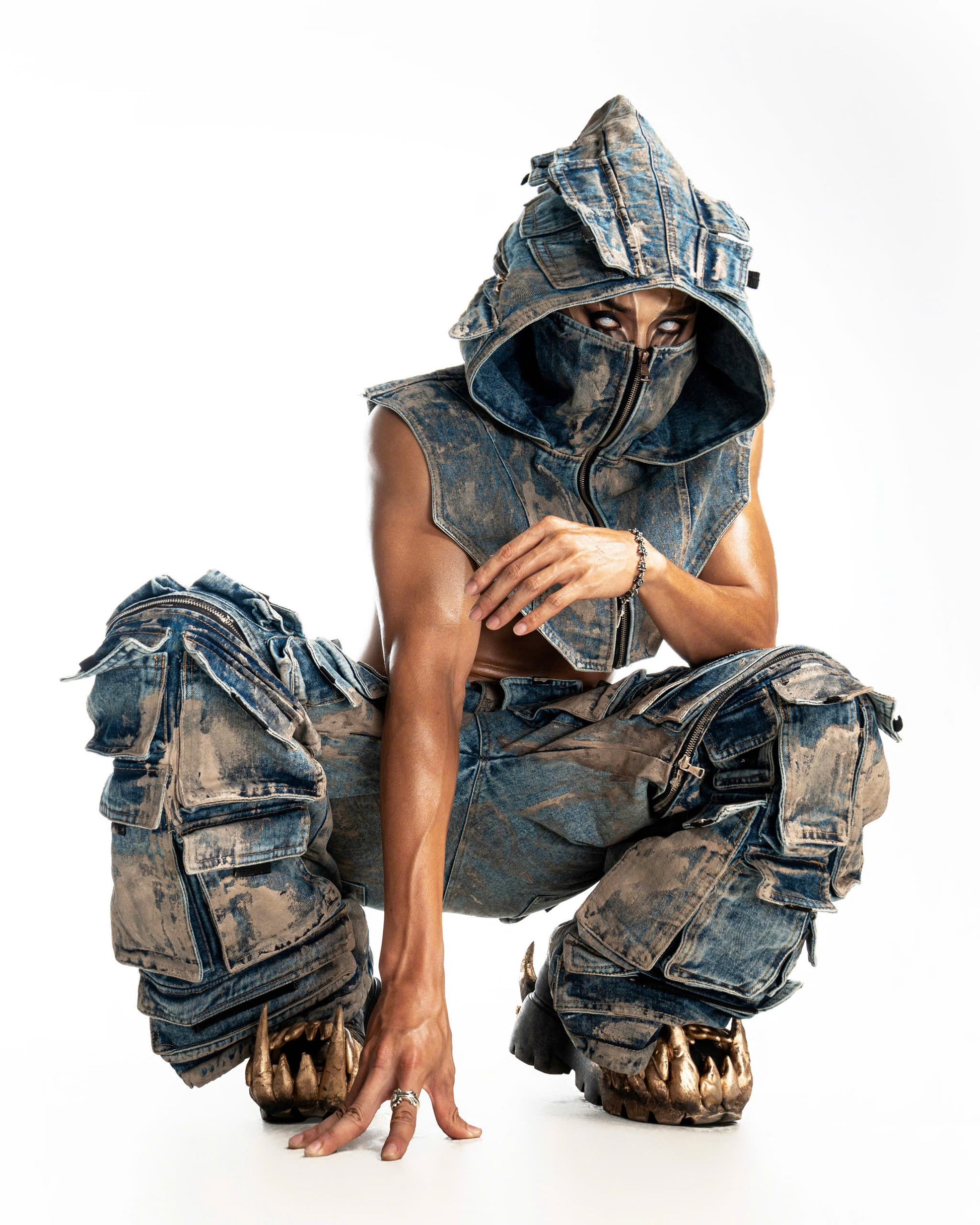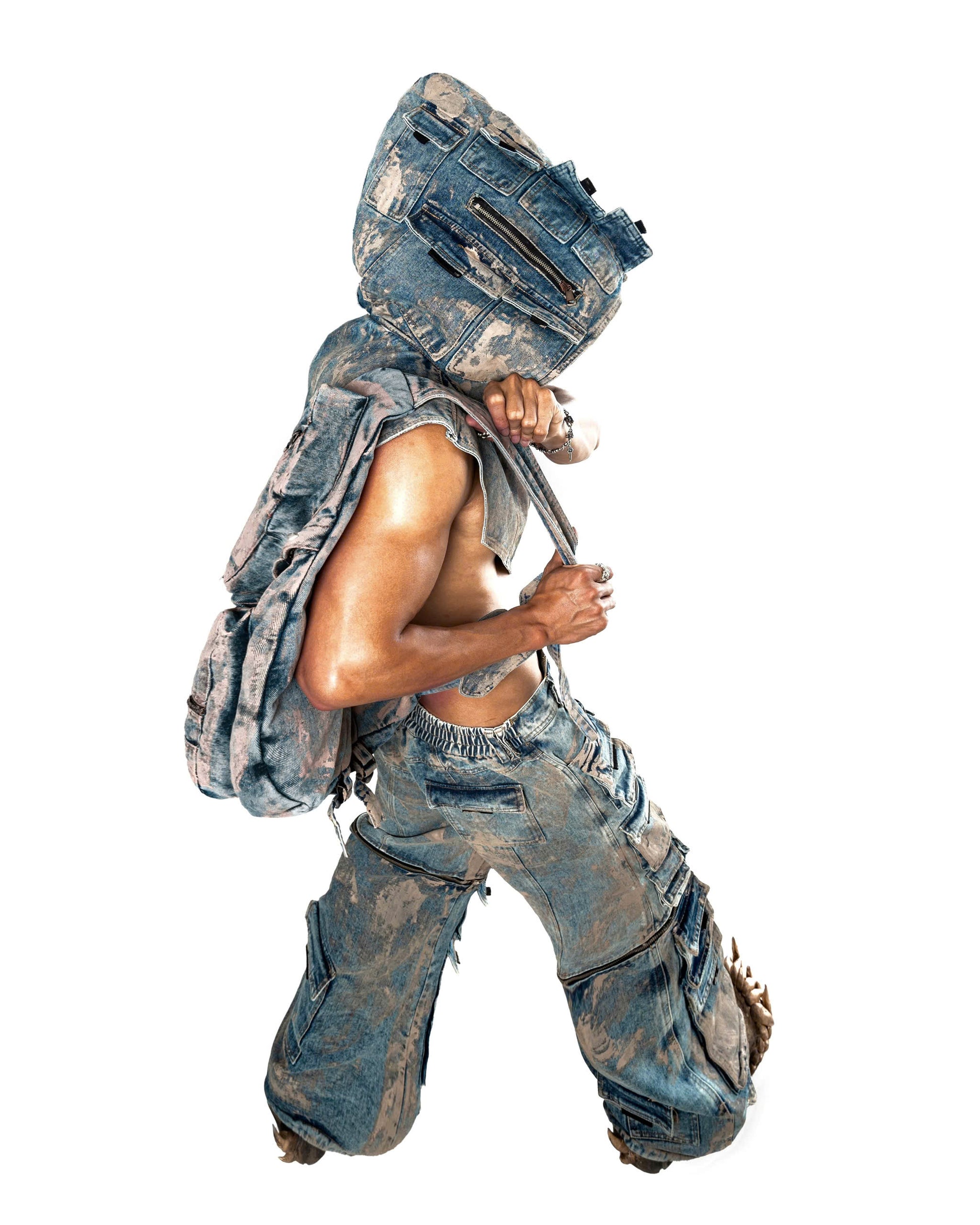 A signature 3-piece set including jacket, pants, and cap defined by a complex pocket system that reflects DKILLUMINATE’s utilitarian spirit.