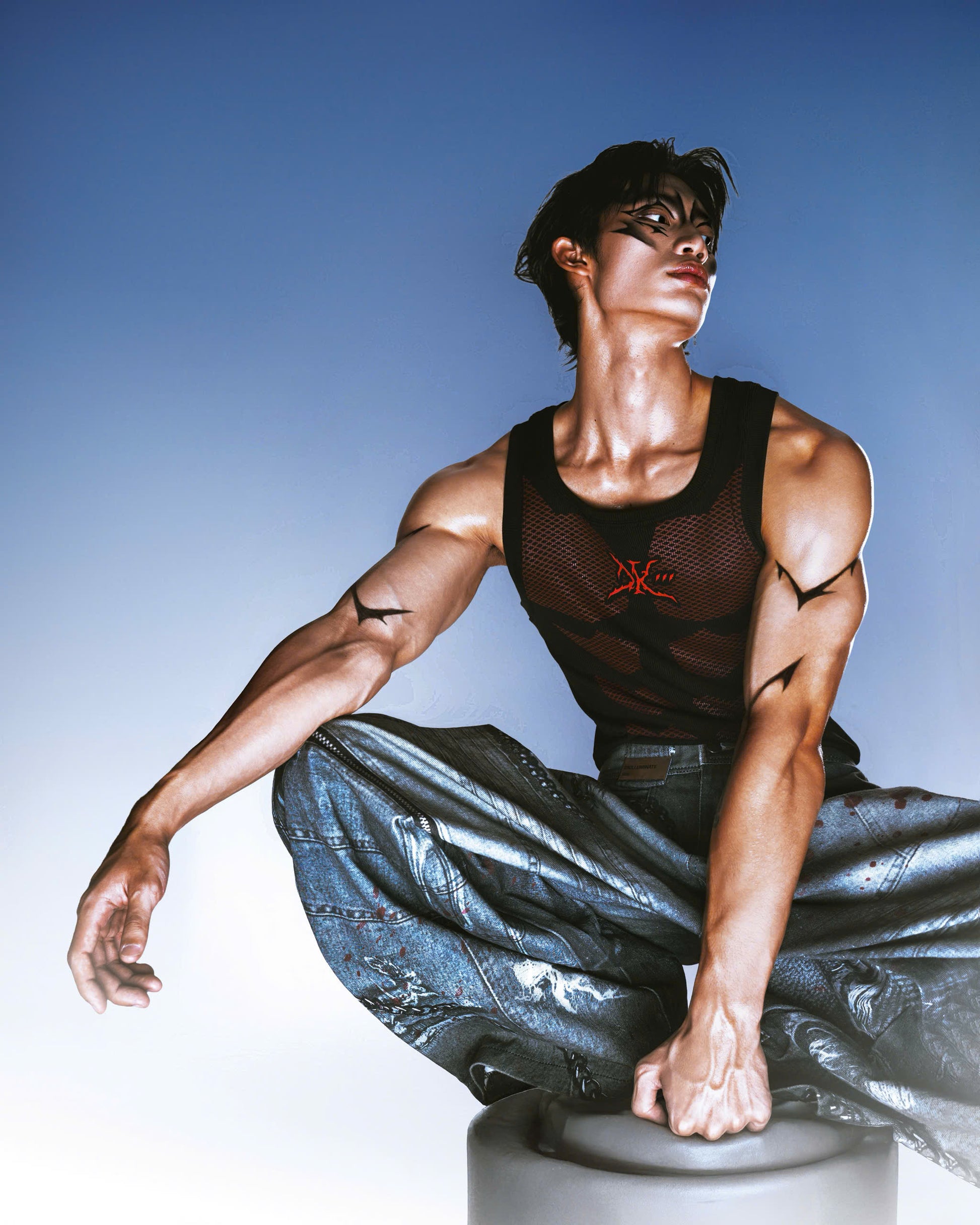 TANK ON THE TOP TANKTOP made from 4-way stretch ribbed cotton, breathable and flexible. Inspired by “armor” graphics, creating a strong 3D effect.